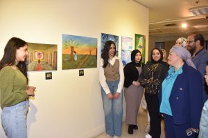 الفنانة لوسندا سامح في معرض Artopia International Art Exhibition: لوحة تعبر عن الضغط النفسي والصمود