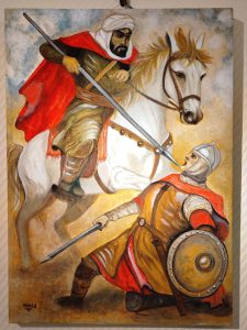 وقد شاركت بعمل فني مميز عبارة عن لوحة مقتبسة من عمل لفنان فرنسي، تجسد معركة أرسوف التي دارت بين صلاح الدين الأيوبي وريتشارد قلب الأسد، ونُفذت باستخدام الألوان الزيتية على القماش (Canvas)، حيث عكست من خلالها رؤيتها الفنية في تناول الأحداث التاريخية بأسلوب بصري معاصر.
